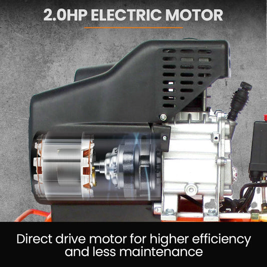UNIMAC 24L 2.0HP Air Compressor, Direct Drive, 2 Couplers for Airtools Tyre Inflation, Portable, Electric