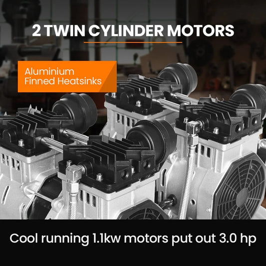 UNIMAC 100L 4.5HP Silent Oil-Free Air Compressor, with Twin Nitto Outlets, 15A Plug