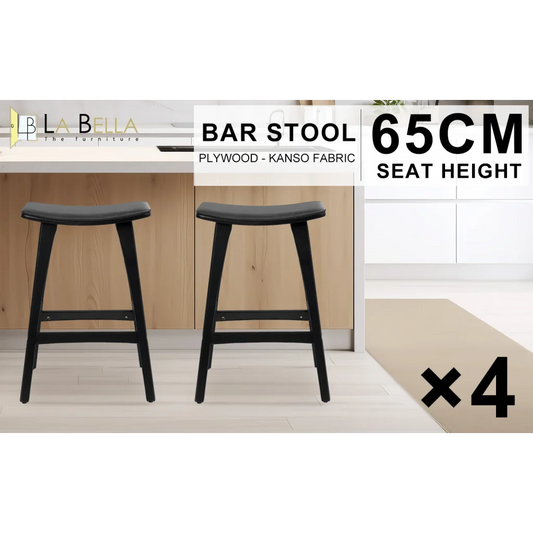 4X Wooden Bar Stool Padded PU Leather Dining Chair KANSO 65cm BLACK