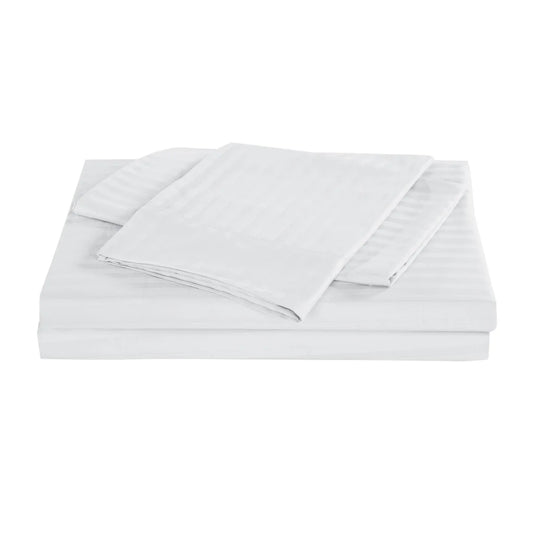 Cotton Sheet Set 1200TC Stripe - Double White Kensington