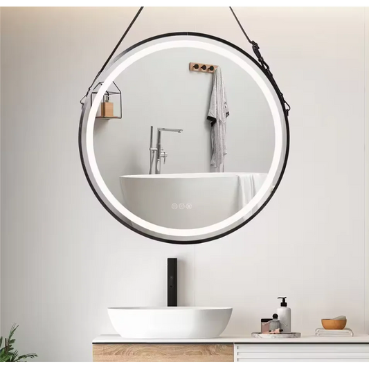 Interior Ave - LED Round Hanging Salon / Bathroom Wall Mirror - Black - 80cm
