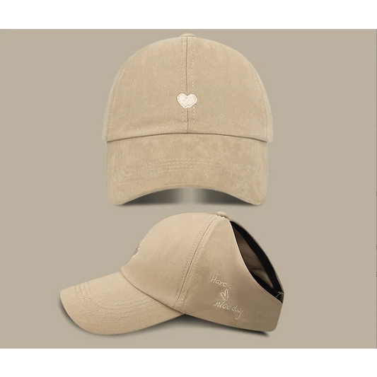 Khaki Stylish Ponytail Opening Baseball Cap - Have a Nice Day" Embroidery"