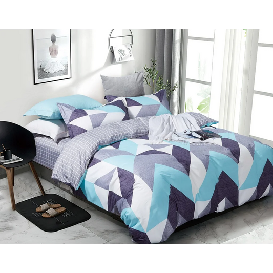 Khaki-darkgrey 1.5m Bed Fitted Sheet Set with 200x230cm Duvet Cover - 4-Piece Bedding Set