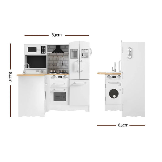 Kids Kitchen Play Set Wooden Pretend Toys Cooking Children Food - White