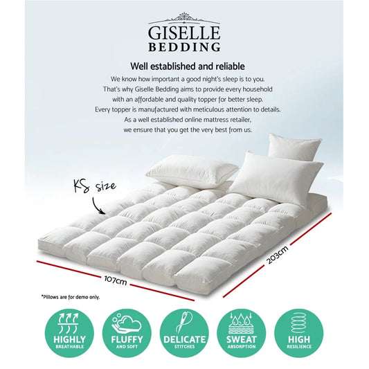 King Single Mattress Topper 1000GSM Pillowtop Microfibre Protector