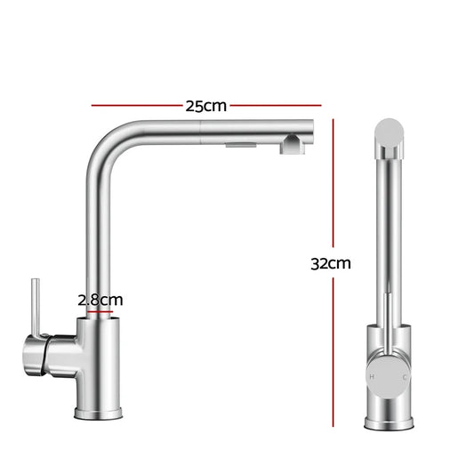 Kitchen Mixer Tap Pull-Out Round 2-Mode - Sink Basin Faucet Swivel WELS Chrome