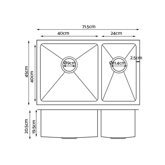 Kitchen Sink Stainless Steel 710x450mm Under/Topmount Double Bowl, Silver