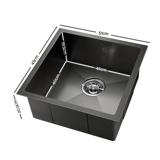 Kitchen Sink Stainless Steel 440x440mm Under/Topmount Laundry Bowl, Black