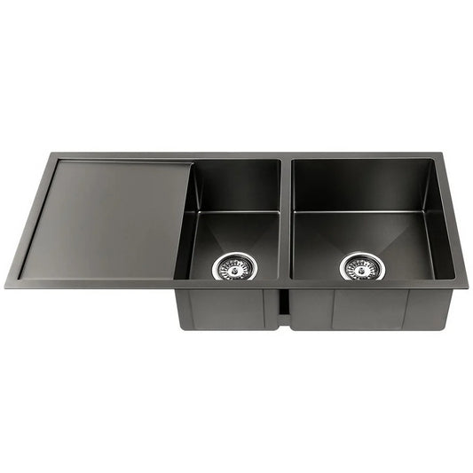 Kitchen Sink Stainless Steel 100x45cm Under/Topmount Double Bowl, Black