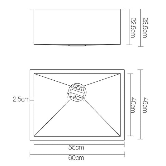 Kitchen Sink Stainless Steel 600x450mm Under/Topmount Laundry Bowl, Black