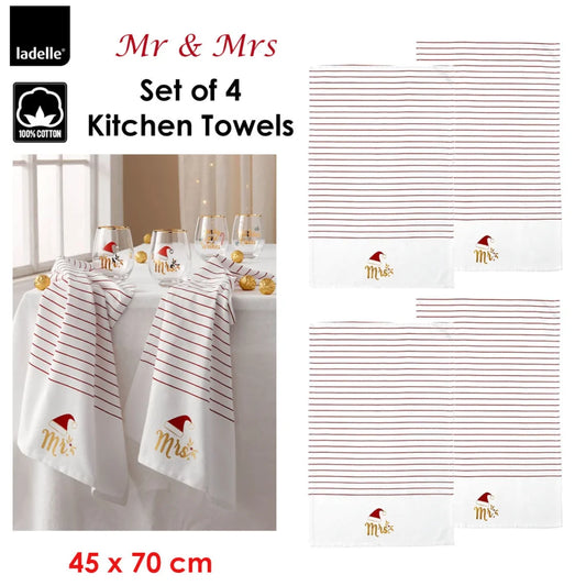 Kitchen Tea Towels Set of 4 Ladelle Mr & Mrs Christmas Hat Cotton 45x70 cm