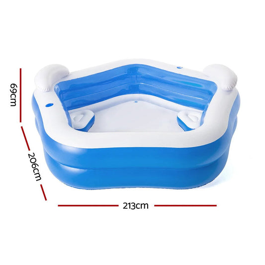 Bestway Kids Inflatable Pool Above Ground Pools Seat Cushions Cup Holder 213x206cm