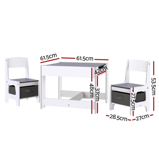 Keezi Kids Table and Chairs Set Play Activity Toys Storage Chalkboard Desk Grey