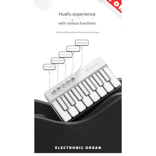 Mini Pocket Piano Electronic Keyboard - 18 Keys, Multiple Modes, LED Lights, Portable Musical Toy(white)