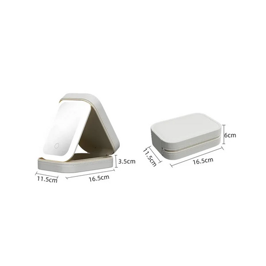 White LED Jewelry Box with Mirror - Smart Light Adjustment and Dual Power Charging for Travel and Home