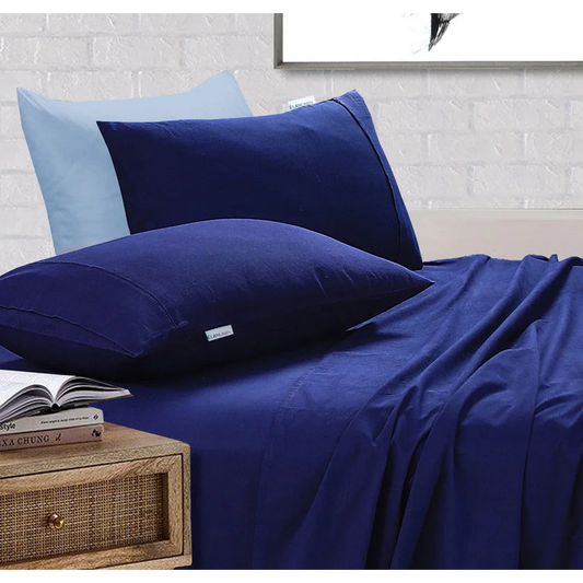 Egyptian Cotton Bed Sheets Set 100% Vintage Washed 500TC Navy Blue - Single
