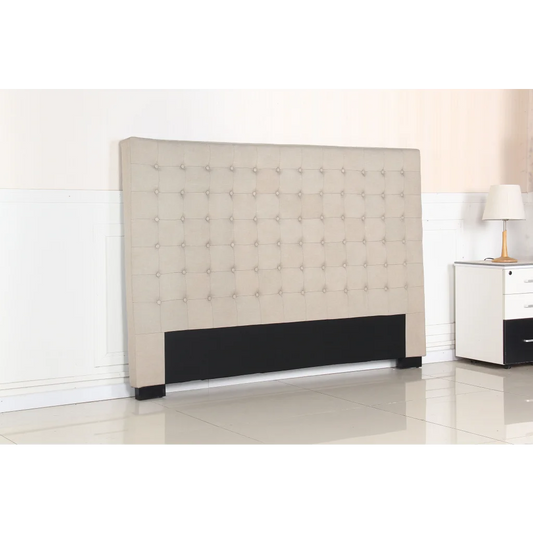Bed Head King Beige Upholstered Headboard Fabric Tufted Buttons