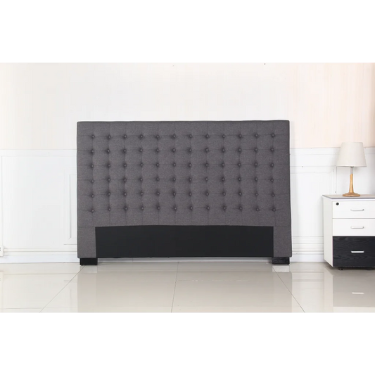 Bed Head Double Charcoal Upholstered Headboard Fabric Tufted Buttons