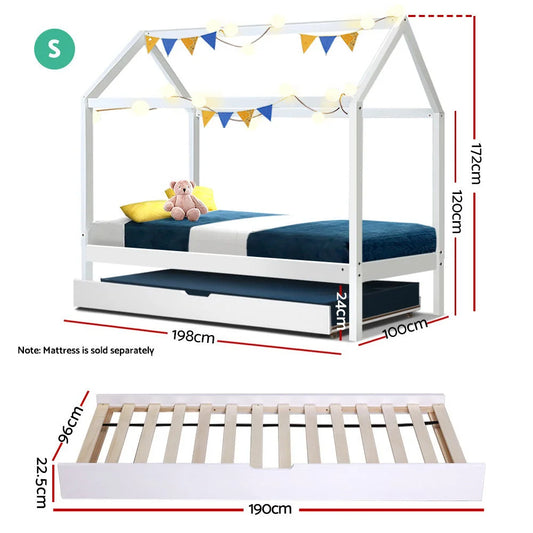 Trundle Bed Frame Wooden King Single Size Base Daybed Mattress Wood Leather