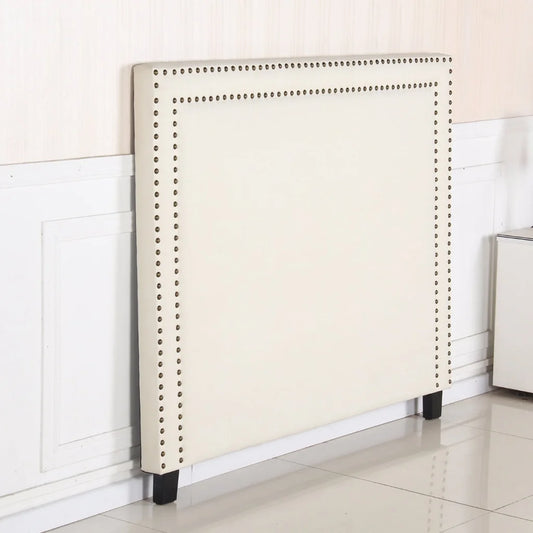 Upholstered Fabric Bed Head Queen Size - White with Studded Buttons