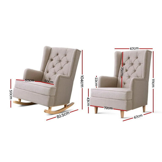 Rocking Armchair Feeding Chair Fabric Armchairs Lounge Recliner Beige