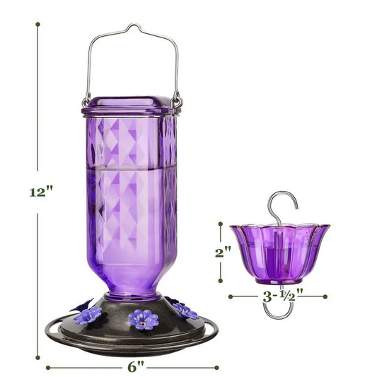 Elegant Hanging Hummingbird Feeder - Decorative Glass Nectar Bottle with Ant Moat, 6 Feeding Ports(Purple)