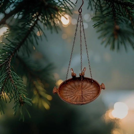 Hanging Cast-Iron Rust Birdfeeder w 2 Birds 41cm