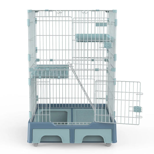 Pet Cat Cage House 3 Level with Litter Tray & Storage Box 134cm - Blue