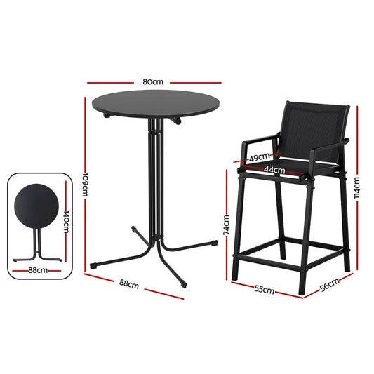 Gardeon 3PC Outdoor Bar Set Stools Dining Chairs Table Patio Furniture Bistro Set Black