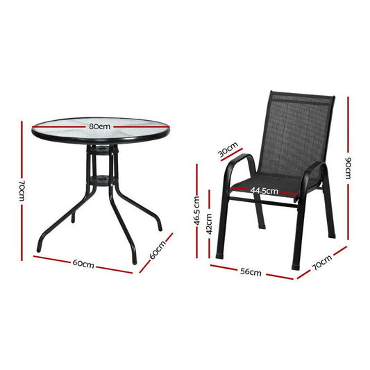 Bistro Set 3PC Outdoor Table and Chairs Stackable Furniture - Black