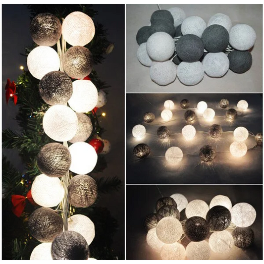 String Lights 20 LED Black White 5cm Cotton Ball Battery Powered for Home Wedding Party Bedroom Decoration Outdoor Indoor Table Centrepiece