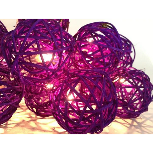 String Lights 20 LED Cassis Purple 5cm Rattan Cane Ball Battery Powered for Home Wedding Party Decoration Table Centrepiece