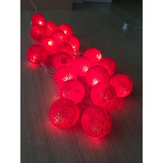 String Lights 20 LED Red 5cm Cotton Ball Battery Powered for Home Wedding Party Bedroom Decoration Outdoor Indoor Table Centrepiece
