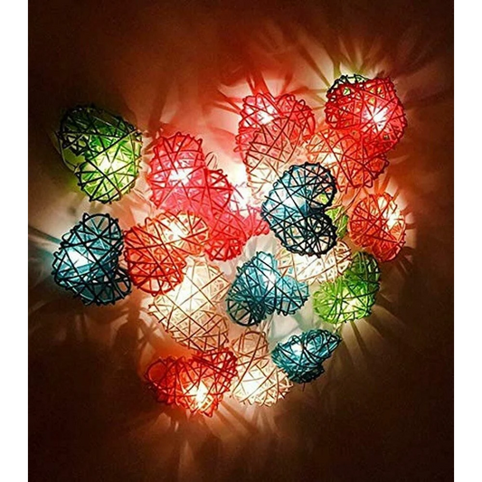 20 Rainbow 3D Hollowed Rattan Heart-Shaped 3M String Fairy Lights, Battery (AA) Indoor & Outdoor Decorations Birthday Kids Celebration PartyRoom Table Lighting