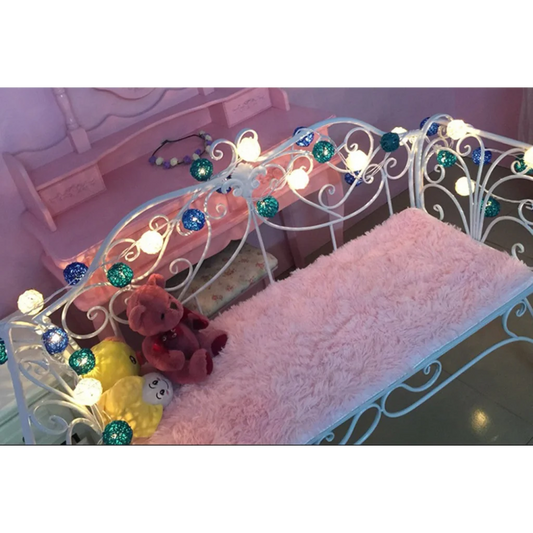 1 Set of Blue n White 5cm Rattan Cane 50 Ball Battery Powered LONG 5m String Lights Christmas Gift Home Wedding Party Bedroom Decoration Table Centrepiece