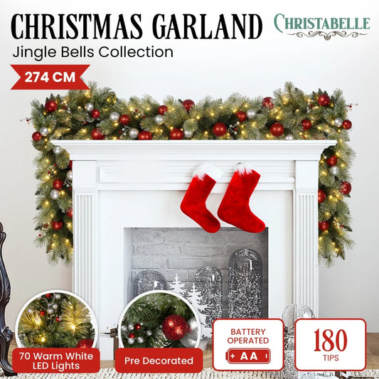 Christabelle 2.7m Christmas Garland with LED Lights Chadwick Tree Decoration Ornament