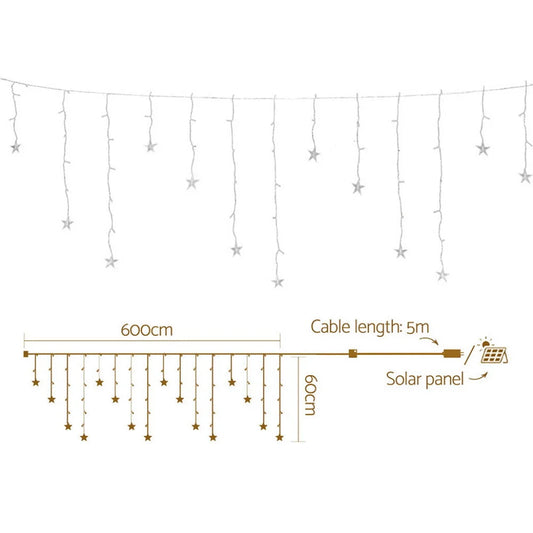 Christmas Icicle Lights 500 LED Solar Powered 20M Outdoor Fairy String - Warm White