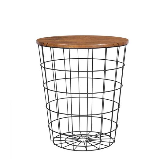 Vintage Round Coffee Tables Set of 2 Side Tables Robust Steel Frame - Rustic Brown & Black
