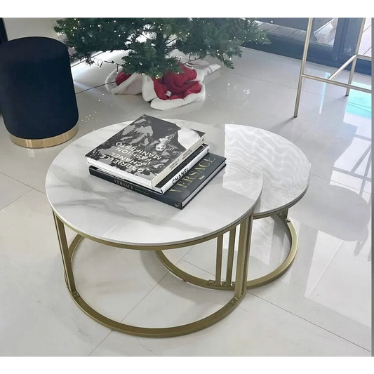 Interior Ave - Premier Nested Coffee Table Set - White Marble Stone