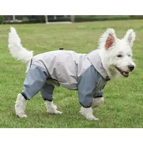 Waterproof Dog Raincoat with Hidden Leash Hole - Windproof and Comfortable for Outdoor Walks, Size:S (Back Length 20cm/7.87in, Bra 31cm/12.20in) Grey