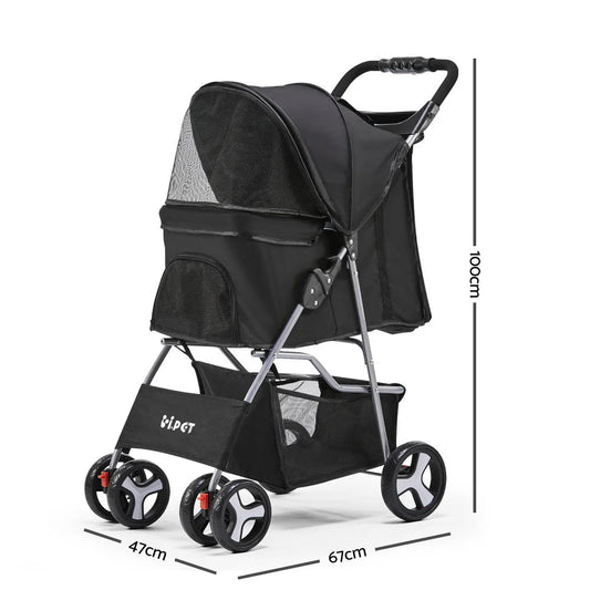 Pet Stroller 4-Wheel, Black