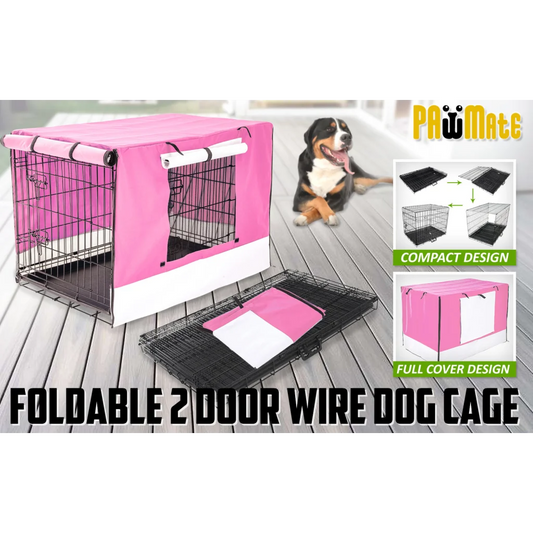 Wire Dog Cage Foldable Crate Kennel 42in with Tray + Pink Cover Combo