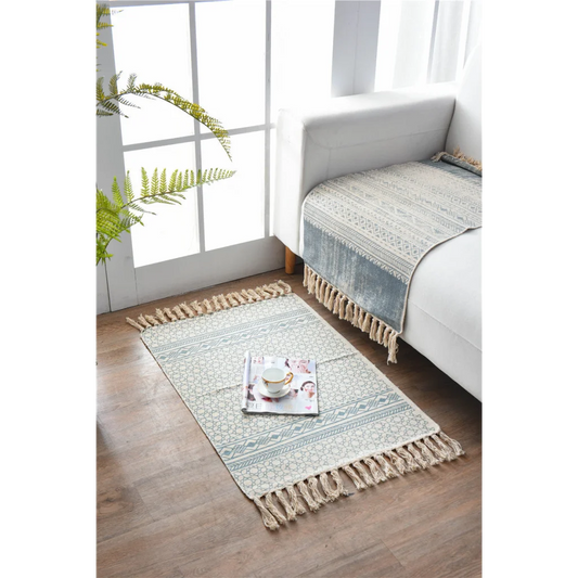 Handwoven Cotton Tassel Floor Rug for Bedroom or Living Room|Soft, Modern Geometric Design,60x90cm