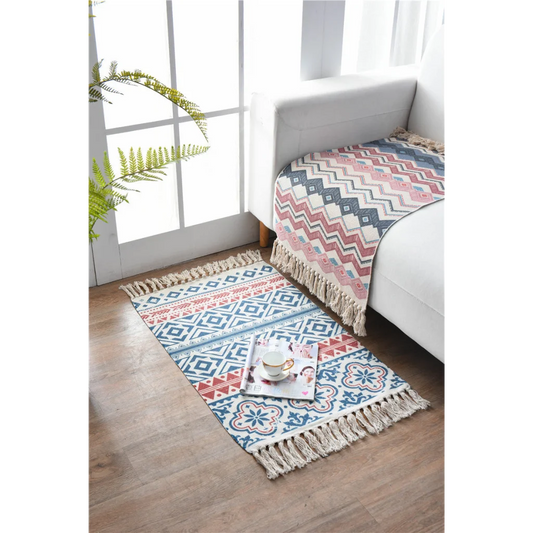 Bohemian Cotton Area Rug with Tassels - Geometric Pattern, Decorative Floor Mat 60*90cm