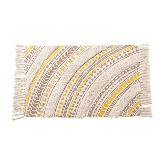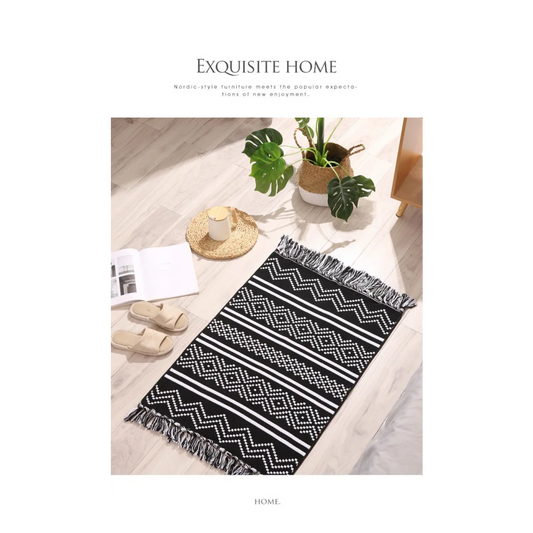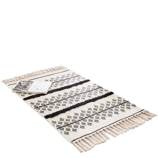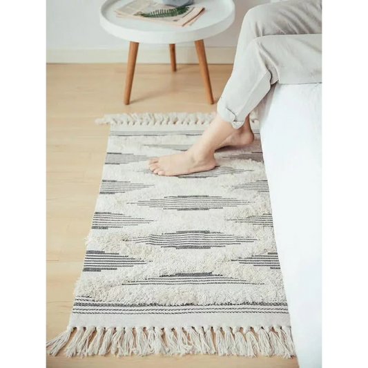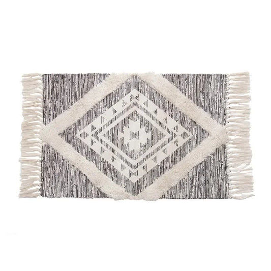 Handwoven Cotton Tassel Floor Rug for Bedroom or Living Room|Soft, Modern Geometric Design,60x90cm