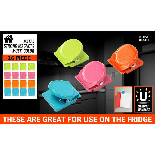 16Pc Magnetic Spring Clamps Magnet Refrigerator Clips Note Holder Fridge Tips