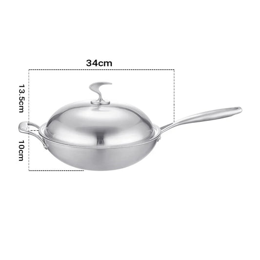 Wok Frying Pan Premium 3-Ply 38cm Stainless Steel Double Handle Skillet with Lid