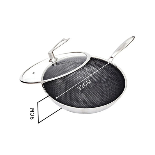 Fry Pan Premium 18/10 Stainless Steel 32cm Non-Stick Interior Skillet with Helper Handle and Lid