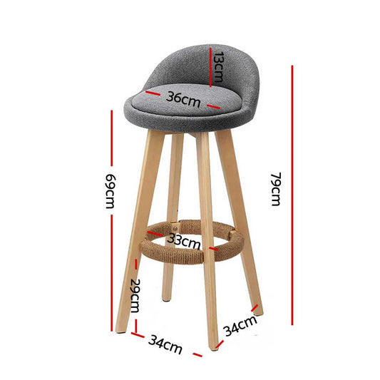 Backrest Bar Stools Set of 2 Fabric - Grey