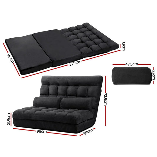 Lounge Sofa Bed, 2‑Seater Floor Folding, Suede, Charcoal